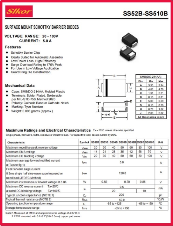 在人工智能、工業互聯網與清潔能源技術加速融合的當下,電子系統對半導體器件的性能要求已從“可用”躍升至“極致高效”。薩科微Slkor推出的SS54B肖特基二極管,憑借其突破性的低損耗、高速度與極端環境適應性,成為高頻電路、電源轉換等領域的“性能標桿”,為智能設備能效升級與復雜場景穩定運行提供了關鍵技術支撐。