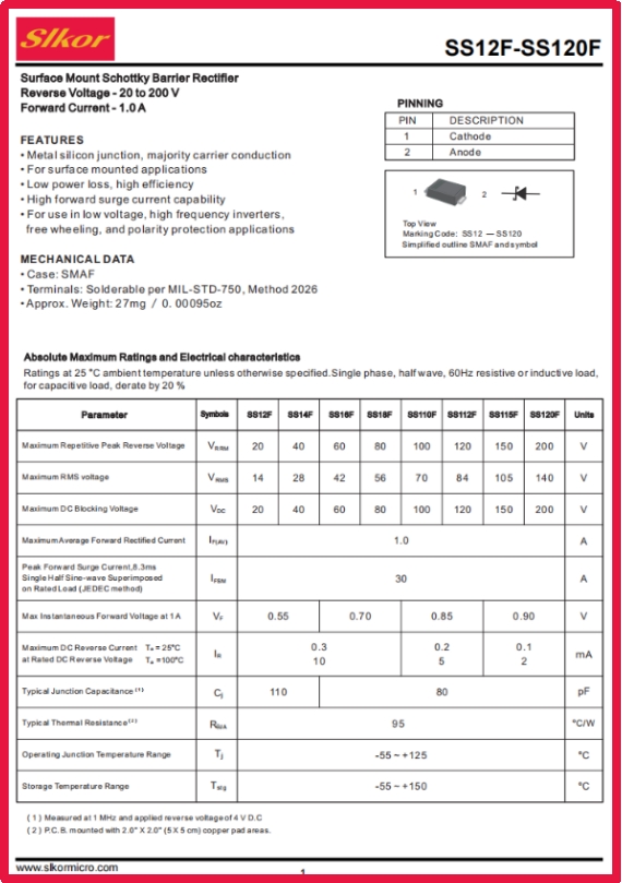 在智能手機快充的瞬間電流控制中,在LED燈帶穩(wěn)定發(fā)光的電源轉(zhuǎn)換里,在消費電子設備抵御電壓波動的保護機制中,一顆直徑僅3mm的肖特基二極管正默默發(fā)揮著關鍵作用。slkor薩科微推出的SS14F,憑借其獨特的性能組合,成為電源管理領域“小而強”的典型代表,為各類電子設備提供了可靠的效率保障。