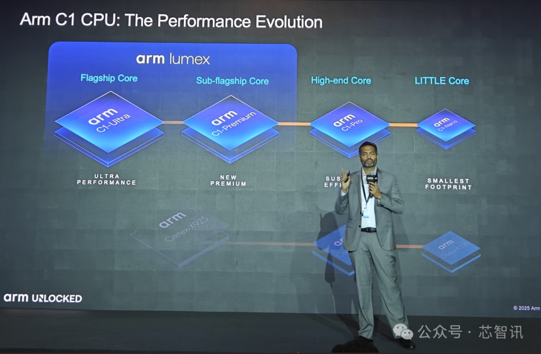 Arm全新的 C1 CPU 集群是 Arm Lumex CSS 平臺的組件之一,也是首個基于 Armv9.3 架構的CPU 系列產品。