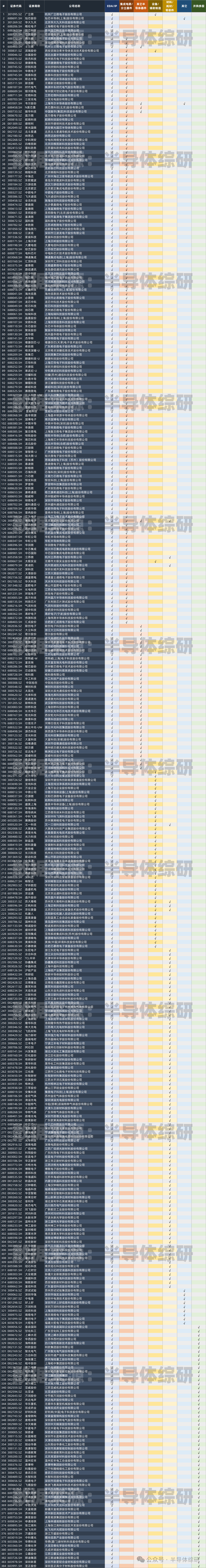 目前為止,我已經收集到了384家上市半導體企業,大致分了7個大類,歡迎大家參考。如果有任何補充,也請隨時給我留言。謝謝您的支持 免責聲明:本文采摘自“半導體綜研”,本文僅代表作者個人觀點,不代表薩科微及行業觀點,只為轉載與分享,支持保護知識產權,轉載請注明原出處及作者,如有侵權請聯系我們刪除。