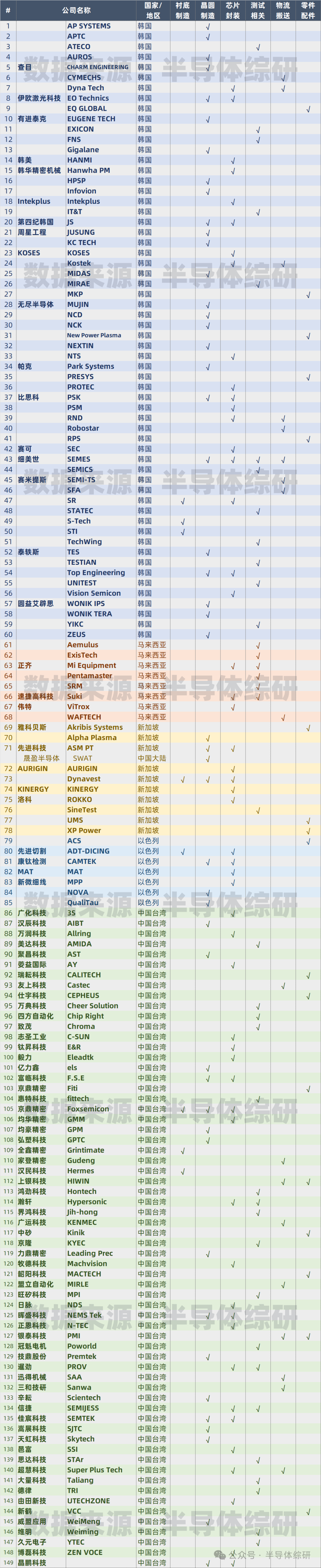 繼續梳理一下,亞洲半導體設備供應鏈資源